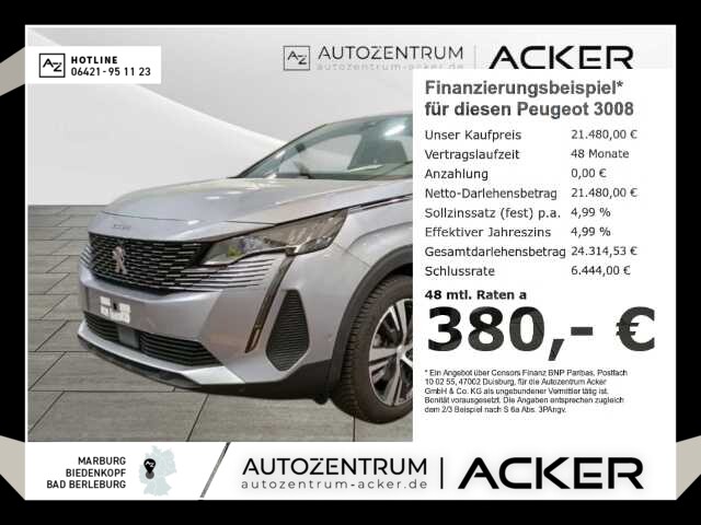 Peugeot 3008 PureTech 130 Allure LED RFK -49 21.480 €MwSt. ausw.Gebrauchtfahrzeug34.135 km01.06.202496 kW/ 131 PSGrauSchaltgetriebeSuperDetails Favorit Vergleichen DetailsVorschau Schließen AusstattungBeschreibung18 BilderKontakt